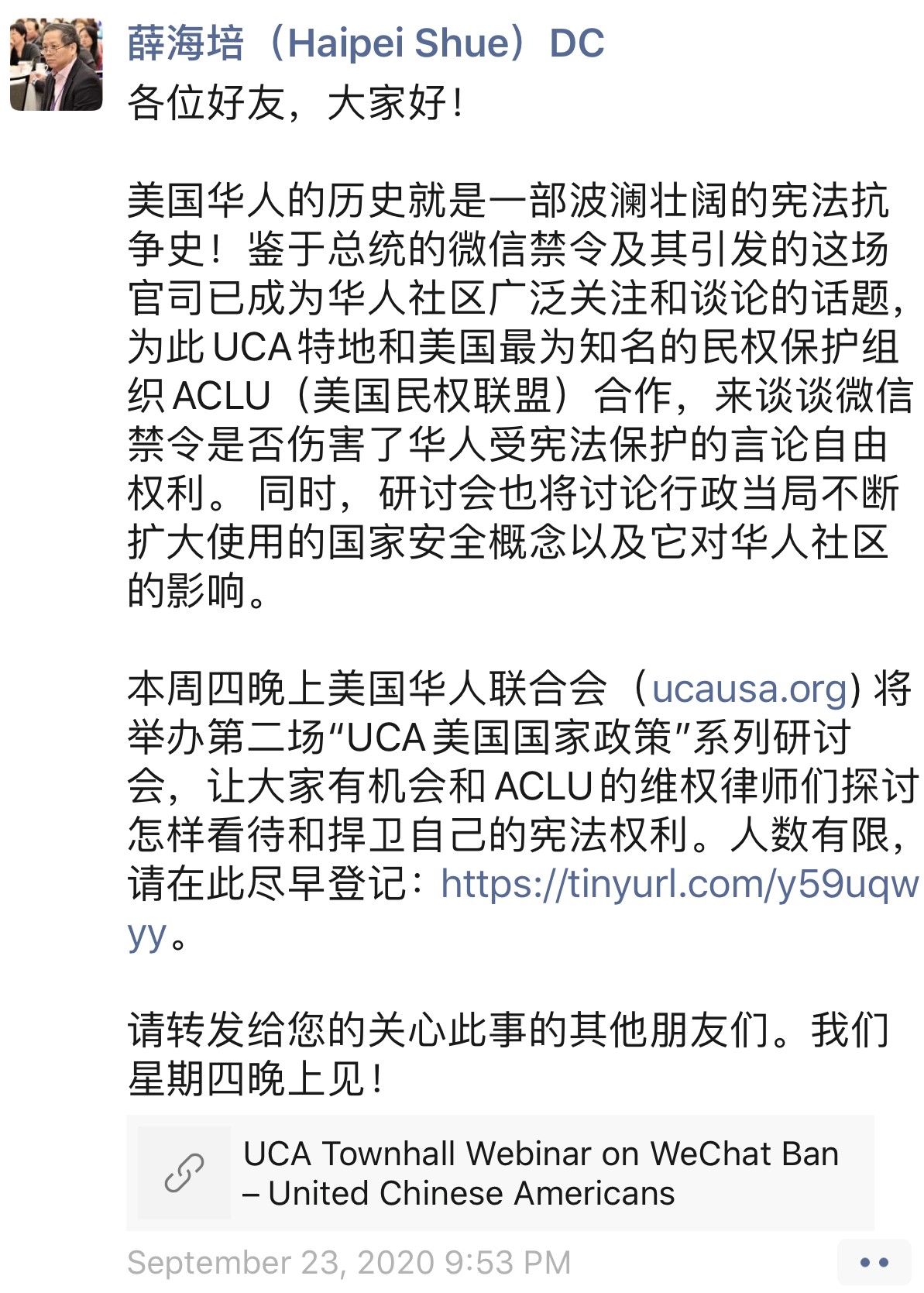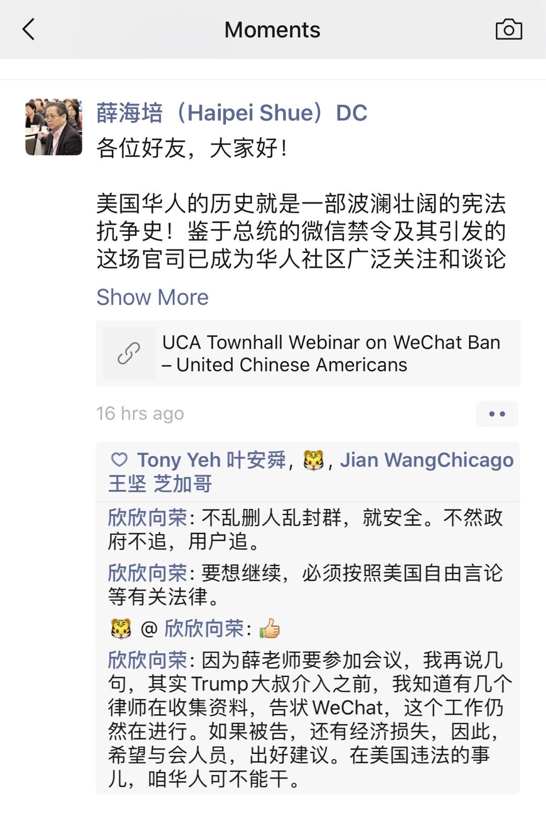 首先是, 微信是否伤害华人受宪法保护的言论自由。