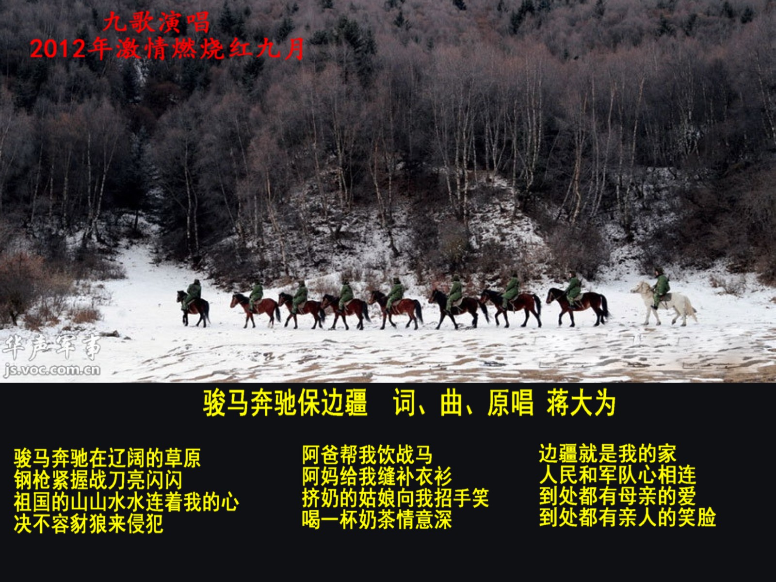 First, 骏马奔驰保边疆 is a song I really liked. This has nothing to do with politics. 保边疆 is a universal value for all people and for all nations.