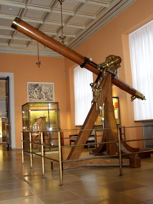 图二夫琅和费展示他的新发明,分色镜。可以看到科学男和技术男衣服和鞋都不同,肚子大小也不一样。 图三,夫朗荷费线 那夫琅和费的望远镜到底高明在哪呢?小时候咱们都看过《说岳全传》,里面有这么一段话: “… 太宗皇帝驾幸五台山进香,被潘仁美引诱观看透灵牌,照见塞北幽州天庆梁王的萧太后娘娘的梳妆楼,但见楼上放出五色毫光….”. 据考证,所谓 “透灵牌”就是原始形态的望远镜。而所谓“五彩毫光”就是围绕在物体周围的小小彩虹,是望远镜的一种失真,行话说叫“色差”。色差和钻石里的火一样,都是由于不同波长的光在介质里折射率不同造成的。钻石工业里要大大发扬的火却是望远镜工业里要极力避免的。 防止色差的一种技术是用两种不同材质的玻璃,即“火石”玻璃(flint glass)和 “冕牌”(crown)玻璃来制成复合透镜,即所谓 “无色差” (achromic )透镜。 无色差透镜由英国业余科学家霍尔(他本行是个律师)于1729年发明的。到了夫琅和费手里,他发现当时的冕牌玻璃有微观缺陷,而且越厚缺陷积累越严重。因此这种玻璃实际上不能做天文望远镜的大型无色差物镜的。为此,夫琅和费研制了自己的大型玻璃熔炉并造出自己的品牌玻璃。 除了有好玻璃,还必须要有好的加工技术。当时加工天文望远镜用的大镜片是技术的难点。夫琅和费为此专门制造了新的研磨机解决这个难题。 到了后来,连老牌的科学大国英国都造不出那么好的光学仪器。在夫琅和费领导下的巴伐利亚光学研究所成了真正的世界第一。可是夫琅和费一直是个“民科”。直到 咱是写科普的,写技术男不能光写他们怎么发大财,也要写出让他们发财的科学道理。夫琅和费发财是因为大镜片。那天文望远镜为啥要用大镜片呢? 因为从光学讲,光学分辨率是由仪器的口径决定的。人的瞳孔口径只有两毫米左右,由此决定了人眼睛的光学分辨率是视角“一分”。啥叫一分?就是从地平线到天顶算视角九十度,把一度分成六十份就是视角一分。天上的星星虽然能看得见,但是除了太阳月亮全都小于视角一分的人眼分辨率,所以只能看到一个光点。 到了伽利略时代,他的望远镜已经有3.8厘米的口径,比人眼分辨率高多大约二十倍。据野史记载,有一天伽利略对他奶奶说,“今天我让你开开眼,看个天文奇迹”。于是拿出他的望远镜,指向天边的长庚星(金星)。那长庚星在望远镜中已经不是一个耀眼的亮点,而是个弯弯的月牙。没想到他奶奶看了一眼,不屑地说“什么奇迹,我早就看过了”。原来他奶奶属于人类中万分之一的好眼睛,能够裸眼看见金星盈亏。 夫琅和费的大师级作品是9 英寸(24厘米)折射式望远镜(图四),已经比人眼的角分辨率强了数百倍。由夫琅和费开启了“巨型折射望远镜时代” (the great refractor era)。各天文台竞相定制夫琅和费的望远镜,就象今天国人抢购最强的医学成像机一样。可是巨型折射式望远镜时代只延续了七十年,口径从1826年的24厘米到1900年的125厘米, 然后就像恐龙一样退出历史舞台。为啥呢?因为透镜口径越大镜片越重,由于折射望远镜的镜片中间通光,只能由边缘支持重量,所以由自重造成的玻璃变形就足以破坏了它的成像精度。 图四 夫琅和费的九寸折射式望远镜。 那么,难道技术的发展就停止在夫琅和费时代了?当然不是。夫琅和费之后兴起了大型反射式望远镜,反射望远镜的镜片可以固定在底座上由很多支点支撑,所以可以做得很大。现在正在兴建的欧洲超大望远镜(European Extremely Large telescope), 由798块直径140厘米的镜片精确地合成并高达3900厘米的口径。这到底是个啥概念呢?用它看月亮表面,分辨率就象宇航员站月面上看脚下的土地一样。 对光学望远镜来说,镜面抛光的配合要达到比光波长小的水平(百纳米级)。这个是很难的技术活。如果用波长长得多的无线电波,大口径在技术上就容易多了。中国现在正在兴建的500米口径的贵州射电天文镜,世界第一(图五,中科院2014年七月十七消息)。 图五,目前世界最大的贵州500米射电天文望远镜。看看盘旋的车道! 结束的时候有人可能要给我挑毛病了。既然史上记载的第一个望远镜是1608年德国人汉斯李配舍(Hans Lippershy)造的,你怎么说中国宋太宗时代就有? 这岂不是说明中国在科学技术上领先西方几百年吗? 奥,我并不是想参加网上为国人提气的热门讨论。我只是想说从史前时代开始,人类就会把透明宝石放在眼前照来照去,看看那些火呀啥的。随着宝石的形状不同,增强视力(老花镜,放大镜)甚至能望远也应该是情理中的事。五台山上应该造个假古迹“透灵牌”,凭票观看,也可以增加点旅游收入啥的。 参考文献: 夫琅和费: http://en.wikipedia.org/wiki/Joseph_von_Fraunhofer 巨型折射望远镜时代 http://en.wikipedia.org/wiki/Great_refractor 欧洲超大望远镜 http://www.eso.org/public/teles-instr/e-elt/ 望远镜历史 http://en.wikipedia.org/wiki/History_of_the_telescope 贵州射电天文望远镜 http://news24h.allnews24h.com/AyzO 透灵牌http://www.ziyexing.com/book/yuefei/yuefei_010.htm 中学物理书(随便买一本就行了,拜托) |