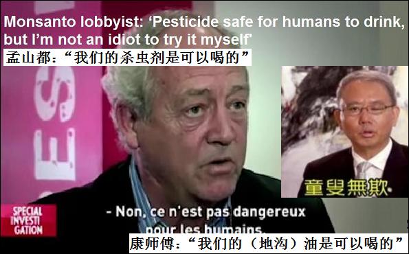 当年,科学家说“DDT 可以喝”;现在,孟山都说“我们的杀虫剂可以喝”。经营康师傅方便面的黑心魏家说“地沟油可以喝”,说归说,他们绝对不把自己的产品喝下肚。 “我喝,您也喝。” 这样劝您喝的,您最好不要100%相信,除非他是Bill
