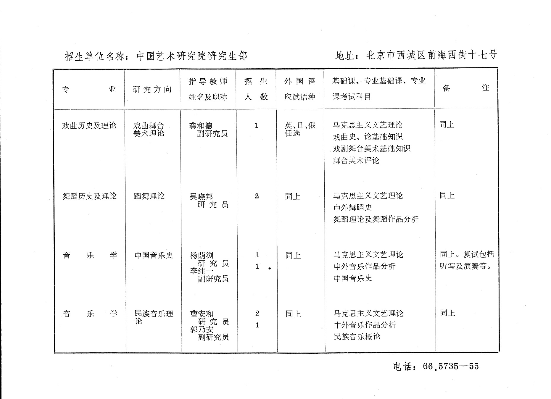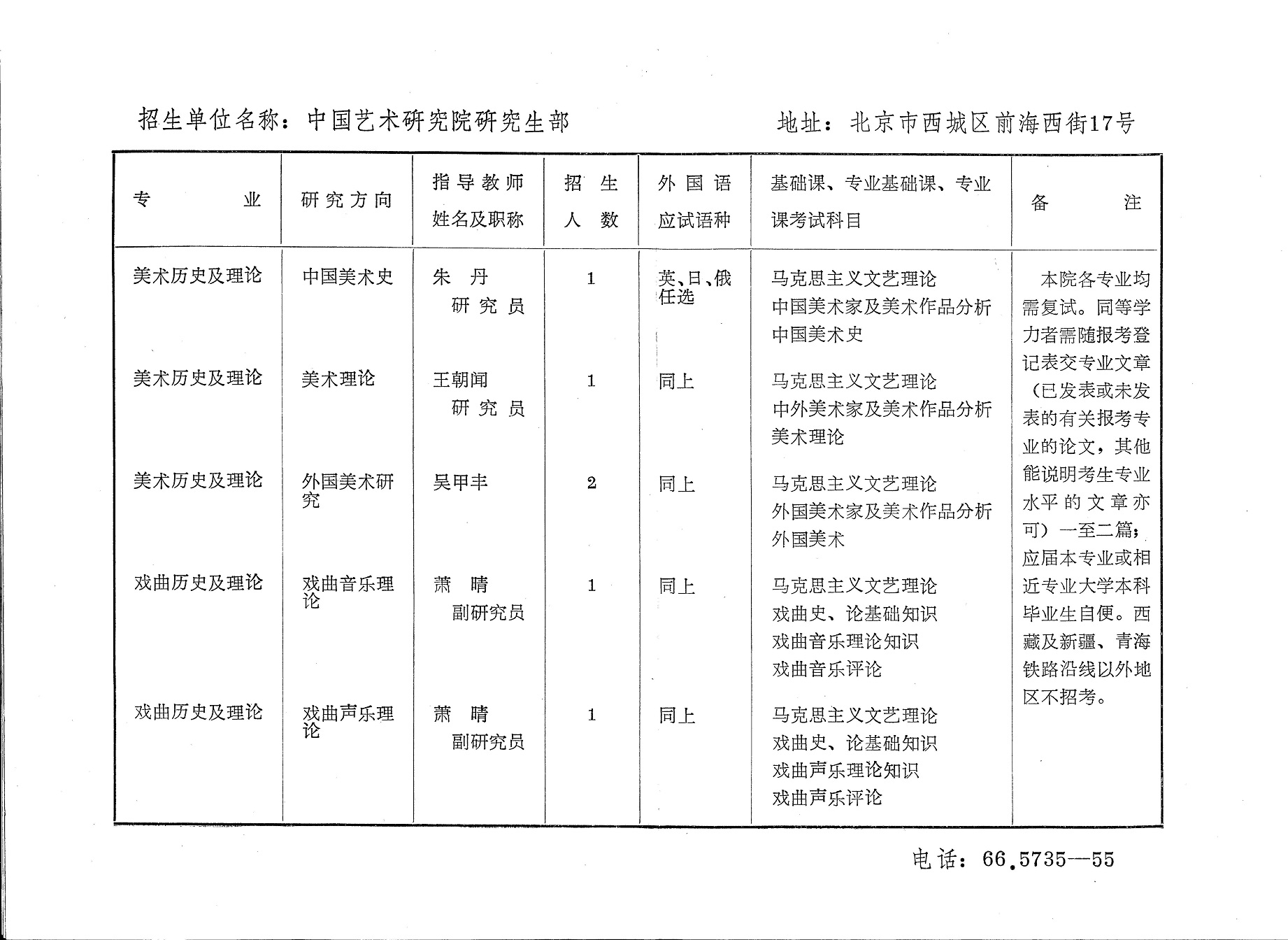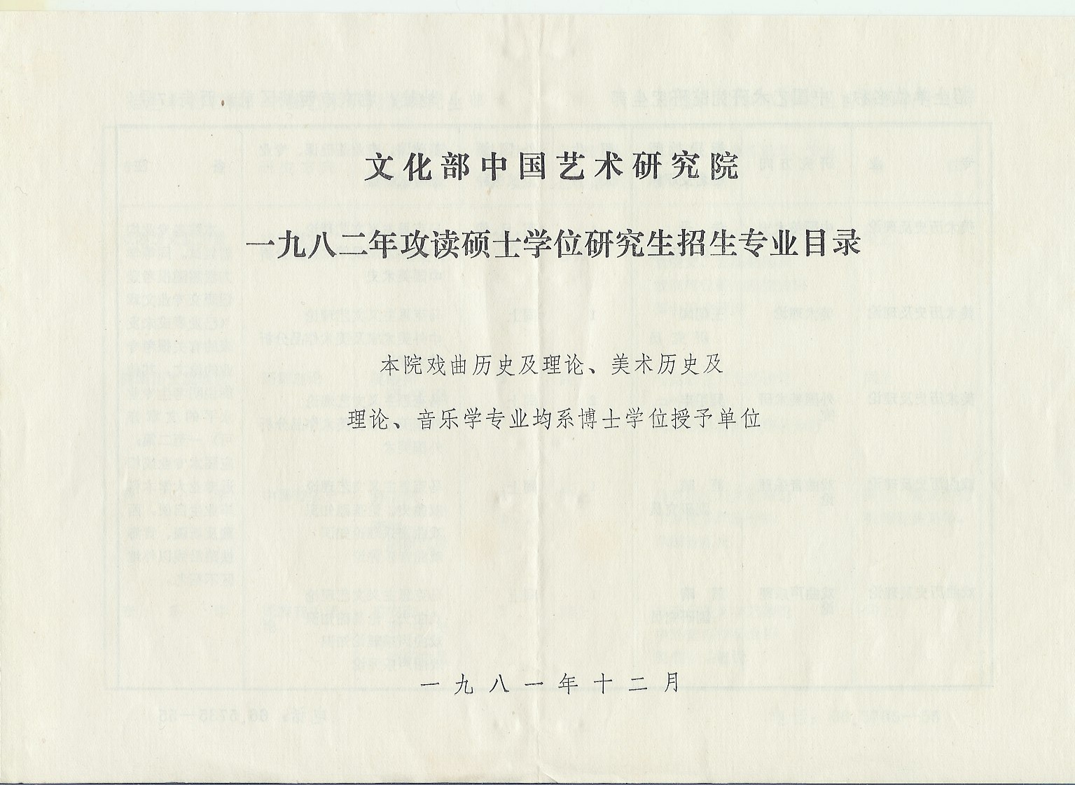 天无绝人之路,就在这时,机会好像来了。82年初,从报纸上看到了中国艺术研究院研究生部招生的短讯,于是我在寒假期间回到北京,去拿了他们1982年的招生目录和报名表。