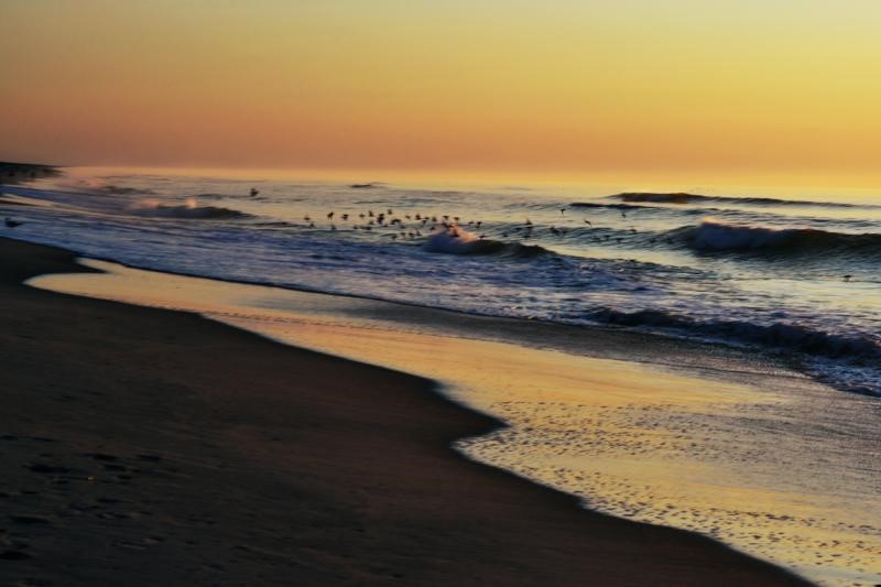 夕阳在地平线上消失着, 飞鸟也急忙飞向栖息之处, 回头对浪轻轻说着 “倦了时,就歇歇吧!”