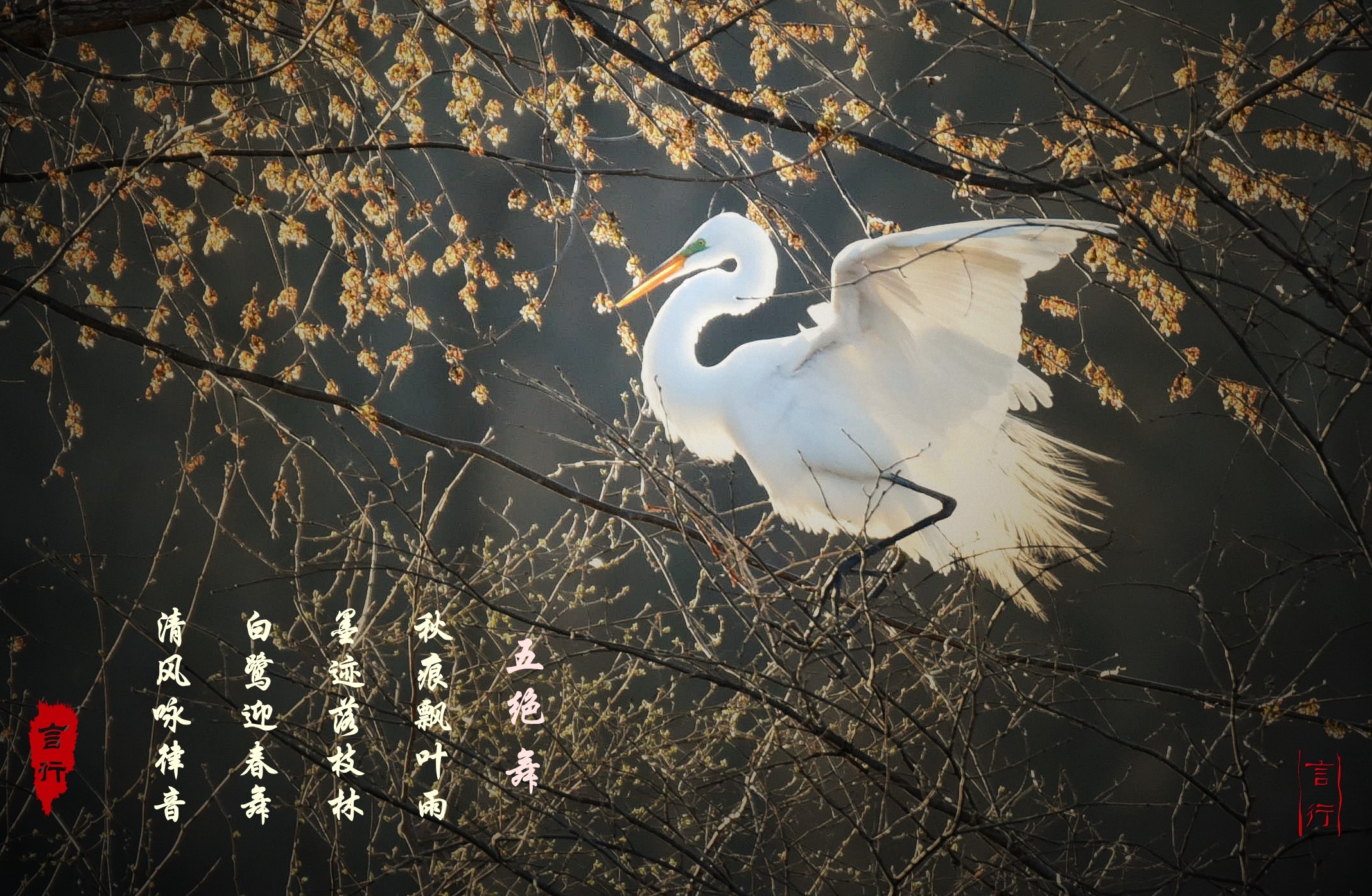 fancao: 一任东风舞,乱枝秋叶纷 飘忽描旧意,圈点染新痕 冬日息寒魄,春晖唤倩魂 悠然辞别去,展翅御青云