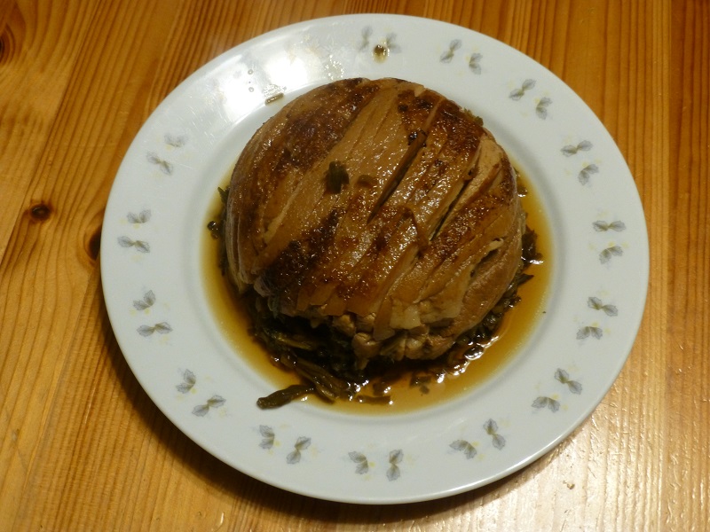 | 你没看错,就是春节大餐,今年,也就是2017年春节吃的。 成语说正月十五贴门神,你这都到生蛋节了,还贴啥春节的东西。嗨,不是没来得及么,better late than never。咱就赶着今年还没过完,贴上了,就算交了作业,顺便给马上要到的狗年新年暖暖身哈。 闲话还是少说,上菜: 头台:春卷 春卷我以前专门有日志,这里就不细说了。 四冷盘:白斩鸡、盐水鸭、熏鱼、卤牛腱子 四冷盘就是取鸡鸭鱼肉,白斩鸡、盐水鸭都是老套路了,不再赘述。 熏鱼的鱼一般用青鱼或乌鱼,不太好找。在中国店里买了一种圆棍子状的鱼,鱼名没记住,凑合吧,吃起来味道还行。我从小在家学的做法是先腌后炸,但有朋友开餐馆,他们的做法是先炸后煮,以后可以试试。 卤牛腱子,也就是牛小腿肉。这东西在一般美国店里看不到,还真要到中国店或者韩国店去买。美国的牛肉嫩,一般的牛肉经不起这么长时间煮,捞起来都烂了,切都没法切。牛腱子有筋有肉,不会烂,用自家祖传的卤水卤上一个小时,味道进去了,肉还没烂,还有形,正好。 四热炒:西红柿炒鸡蛋、蛋皮菠菜、火腿炒青菜、炒鸡片 西红柿炒鸡蛋,国粹,必不可缺。 蛋皮菠菜,平常都是直接用炒鸡蛋,这里讲究一点,就用蛋皮。 火腿炒青菜,南京人喜欢吃青菜,火腿是维州火腿,一菜吃两地。 炒鸡片,因为是鸡年,所以就以鸡肉为主题,来个炒鸡片,图鸡肉的鲜嫩。 四大菜:辣子鸡块、麻婆豆腐、清蒸鲈鱼、扣肉 辣子鸡块:还是鸡年主题,小孩子平常也非常爱吃的菜。 麻婆豆腐:酱油颜色太浅,所以看相不是很好,味道还是很好的。 清蒸鲈鱼:加了维州火腿,味道提升不止一级。 扣肉:这是家母的绝活,工艺非常复杂。五花肉要先煮,再炸皮,再上笼蒸。这么反复几次,肥肉基本上都脱脂了,入口即化,这就是扣肉的魅力。我这是第一次做,火候还掌握不好,刀功也没掌握好,不过小孩子们还是顶顶爱吃。 汤:腌笃鲜 腌笃鲜,也就是鲜肉、火腿、笋子煮的汤。因为是鸡年,就用鸡汤盆盛。 再看看鸡糖盆盖上盖子的样子,是2014年去德国在巴伐利亚州罗曼提克大道上的一个古堡里买的。 最后是甜食:元宵 元宵也有专门的日志,这里不细说了。 总觉得照片不够明亮,看相不够,只能传个信息,不过东西是绝对好吃,这个我敢保证。 其实也不是一天吃的,因为家里面就那么几个人,眼大肚皮小。 |