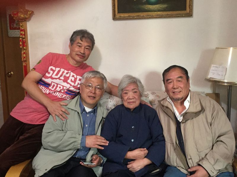 2016年秋在北京,我与两位小学同学一起去看望九十多岁高龄的恩师赵捷老师。左一是邵荣久,专业琵琶演奏家,国家一级演员,曾任江苏省歌舞剧院民乐团的领导;右一是王永亮,小学合唱团的骨干,现被誉为业余歌唱家。