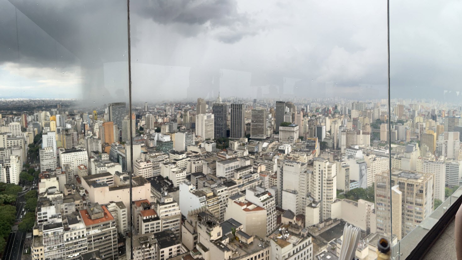 在这里,Passionate Intensity听起来好像并不是一个很正面的用法,因为叶慈说the worst(最坏的人)才拥有满满的Passionate Intensity。不过我觉得Passionate Intensity可以有“生气勃勃”的意思。叶慈是在批判他所描写的那个激烈动荡的年代,是非颠倒的年代——最好的人失去信念,而最坏的人却充满激情。所以,从本意来说,Passionate Intensity真不是负面的意思。 在南美,你可能看不到很多密集的高层居民楼,看不到很多崭新的玻璃商业楼——其实圣保罗保利斯塔大街两边的大楼也很壮观。在我看来,南美的Passionate Intensity体现在处处可以遇到的烟火气、体现在五彩缤纷的街头画、体现在嘈杂喧闹的音乐声、也体现在密密的植被、奇异的花草、以及天上地下的各种奇异的飞鸟走兽。 图一:圣保罗的保利斯塔大街街景 图二:在圣保罗市中心的意大利大楼顶层酒吧看雨中风景 |