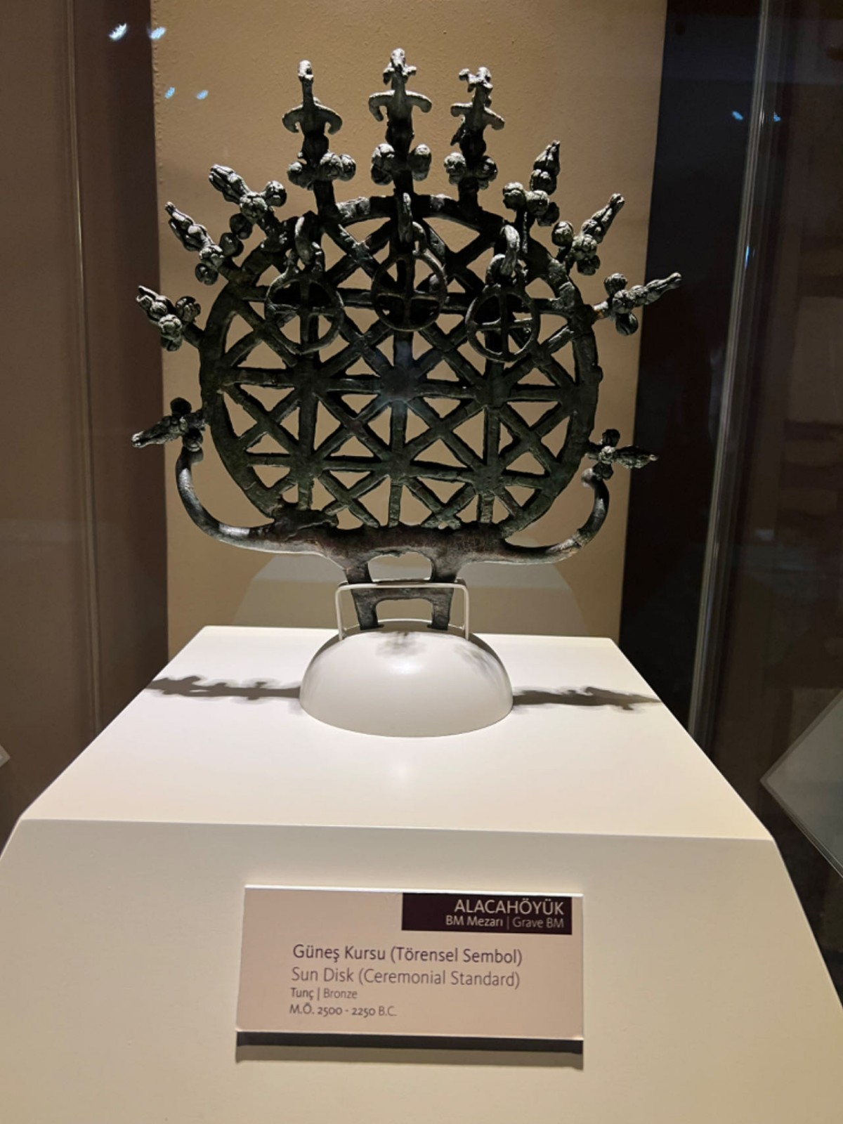 土耳其有两个著名的考古博物馆,一个在安卡拉,一个在伊斯坦布尔。因为时间上的冲突,我只参观了前面一个。此外,我还参观了其他的一些考古博物馆。从某种意义上说,这次土耳其之行是一次考古学习过程也不为过,因为这一部分的内容确实占了很大的分量。 这次旅行使我学习到,安纳托尼亚半岛可以说是人类文明之光最早照亮的地区之一。在这里考古发现超过一万年以上的文物,往往有令人讶异生叹之处。 比如安卡拉考古博物馆收藏了好几件新石器时期(公元前11,000-5,500年)的生殖女神的雕像。 图一:新石器时期的生殖女神之一 按照博物馆的介绍,他们的青铜器时期开始于公元前3000年,这个时期的著名文物是青铜制作的太阳圆盘。这种造型后来被赫梯文明所继承,这是后话。后来我发现在土耳其的很多地方,都可以看到这个图形,也许这也是他们所继承的一种文化符号。 图二:青铜器时期的太阳圆盘 最早在安纳托尼亚半岛留下文字记录的是亚述人(公元前1,950-1,750)。他们来自于两河流域,使用的是刻写在泥板上的楔形文字。楔形文字应该十人类最早的一种文字之一。他们的存世数量很多,而且已经能被解读。 类似于上图的石雕造型,也出现在电影《特洛伊》中的神殿里。也就是说,在赫梯帝国的晚期,古希腊人来到了安纳托尼亚半岛。现代研究表明,赫梯帝国的一些神话传说,后来被希腊神话所吸收。换言之,后来的古希腊人征服了安纳托尼亚,却也传承了安纳托尼亚的文明。 |