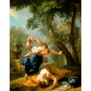 | 巴比伦的白桑葚 廖康 世上最早的悲剧当属巴比伦的白桑葚,主人公的名字叫琵拉姆和梯丝碧。那是公元前八百多年,亚述王朝赛蜜拉米女王垂帘时期的故事。琵拉姆是全巴比伦最英俊的帅哥,梯丝碧是最秀丽的美女,他们的父母都是巴比伦的名门望族。虽然他们两家的房子相离不远,花园只隔着一道墙,但由于两家有世仇,数十年没有来往,孩子们互不相识。 一年春天,似乎大地母亲不喜欢人间的隔阂,让两家花园之间的那道墙裂了个缝。缝虽然小,却足以让年轻人好奇的眼光透过去。他们看见了什么?最美丽的图画也没有这么美!传说中的天神大概就像他这样伟岸吧?传说中的仙女也不可能有她这么妩媚。琵拉姆和梯丝碧透过这狭窄的缝隙看到了天堂。 这狭窄的缝隙像磁石一样吸引着年轻人的心,琵拉姆和梯丝碧每天都情不自禁地到这儿来,透过缝隙向对面凝视。而每当一人看到对方走过来时,就赶快跑开。开始还有点儿慌张,后来,他们猜到对方在做什么,就把自己的最佳形象展示给对方看。梯丝碧转身,翩翩起舞,身段随莎裙摆动,才露出婀娜多姿。琵拉姆舞剑,习习生风,面庞受剑光掩映,更显得光彩夺目。 一天,他们不约而同来到缝隙前,同时贴近墙壁凝视,看到的是对方明亮的眸子。虽然隔着墙,他们仍然脸红了,赶快转过头去,但是谁也没有走开。还是小伙子勇敢,琵拉姆再次贴近墙壁,透过缝隙,看到梯丝碧的倩影。他呼唤:“美丽的姑娘,你千万别走。我是琵拉姆,在这里看你好多天了。我该怎样称呼你?” “英俊的琵拉姆,”姑娘答道:“我也看你看了好多天。我叫梯丝碧。” “噢,梯丝碧,多美丽的名字啊!只有你才当之无愧。如果你的父名不同,该多好呀!如果我们两家没有世仇就好了。” “是呀,如果你的父名是全国任何一个其它的名字该多好啊。可父名有什么关系?那个叫做太阳的天体,在波斯名称不同,可还不是一样闪闪发光?父名不过就是个称呼而已,既不是我们身体的一部分,也不是我们的脾气和秉性。你不会因为我的父名而不愿意跟我说话,对吧?” “你说得太对了!” 琵拉姆感叹:“我不管你的父名是什么,在我眼里,你只是一个最美丽的女子。我要是一天见不到你,就觉得心里空落落的。我希望你不在乎我的父名,跟我做朋友,好吗?” “我没有见过更英俊的男子,” 梯丝碧回答:“传说中的太阳神大概就是你这样子吧?只要看到你,我就觉得心里暖洋洋的,眼前一片光明。我们每天都到这里来见面,说话,好吗?” 这样,两个年轻人堕入了情网。他们每天都在此相会,表达不尽相互的爱慕,诉说不完相互的思念。可惜啊,他们之间隔着厚厚的墙。说话时,凑得近,看不到对方的模样。相望时,离得远,听不见对方的声音。他们诅咒这道墙,石头砌的,那么结实,裂缝那么小,用刀尖刮,也没能刮开多少。这道墙隔开了一对恋人,他们只能互相仰望、互诉衷情,却触摸不到心爱的人。他们甜蜜的爱情也无人分享,只有一个人知道,那就是梯丝碧的奶娘。 梯丝碧十六岁的生日到了,琵拉姆要送她一件礼物。但他不想扔过去,那样会显得太不庄重。他在墙底下挖了一个洞,又挖了一条小渠,再请求梯丝碧也连着墙洞挖条小渠。他把礼物包好,放在一条木船模型里,打来一桶水,灌入渠中,并让小船漂在水上,再让梯丝碧开渠放水。小船漂了过去,梯丝碧惊喜地欢笑起来。但她的惊喜才刚刚开始;打开礼物,她看到一枚精美的琉璃项链,在阳光下闪着五彩的光泽。她戴上以后,就再也没有摘下来。不久,琵拉姆过十九岁生日。梯丝碧让小船给他载去了一个黄金扳指。琵拉姆不仅射箭时戴它,平时哪怕有点碍事,也总是把它套在大拇指上。 这对恋人多么渴望能够手拉着手在林间散步,听百鸟歌唱;在草地上徜徉,闻各种花香。他们多么渴望同骑一匹骏马在原野奔驰,共划一叶扁舟在湖中荡漾。他们多么渴望,无论身处何方,都依偎在一起,永不分离。可是他们中间有堵墙,把他们无情地分开,只能透过那条狭窄的缝隙张望。 这堵可诅咒的墙啊!虽然可恨,它毕竟还有一条缝隙。但世仇那堵墙才真正是密不透风,牢不可破。两家不仅没有和好的可能,反而因仆人间的争吵时常引发主人们斗殴,关系每况愈下,让这两个可怜的孩子看不到一点希望。终于,灾难发生了。梯丝碧的父母给她安排了婚事,要她嫁给一个她从未见过的贵族青年。 琵拉姆和梯丝碧再次来到墙边,透过缝隙,绝望地呼唤着对方的名字,倾诉着心中的悲伤。他们张开双臂,贴在墙上,长久地贴在墙上。慢慢地,墙壁不再冰凉,他们似乎感到了对方的体温。闭上眼睛,他们似乎相拥而眠。不!不能再这样假想。他们惊醒过来,开始把对策商量。他们要私奔,要逃往远方。可在哪里相会呢?你知道城外那个古老的石泉吧?旁边有一株巨大的桑树,上面结满了白色的桑葚。对!就是那个地方。今夜,我们在那里相会,离开这令人心碎的家乡。 那天晚上,月上树梢时分,梯丝碧先来到了石泉旁,焦急地等待着琵拉姆。突然,她听到声响,但那不是她的情人,而是一头狮子。梯丝碧吓得赶紧跑开,躲到附近一个小山洞里。慌乱中,她的纱巾落在了地上,落在石泉旁。那头狮子刚吃了一只小羊,到这儿来喝水。喷香的纱巾,引起它注意,用沾满羊血的大嘴拱了拱纱巾,才去喝水。喝完水,才慢腾腾地走开。 就在此时,琵拉姆急匆匆赶来了。他家事缠绕,好不容易才脱身。远远地,